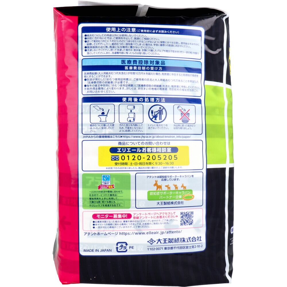 ・トイレに紙おむつを流さないでください。・使用後の紙おむつの廃棄方法は、お住まいの地域のルールに従ってください。