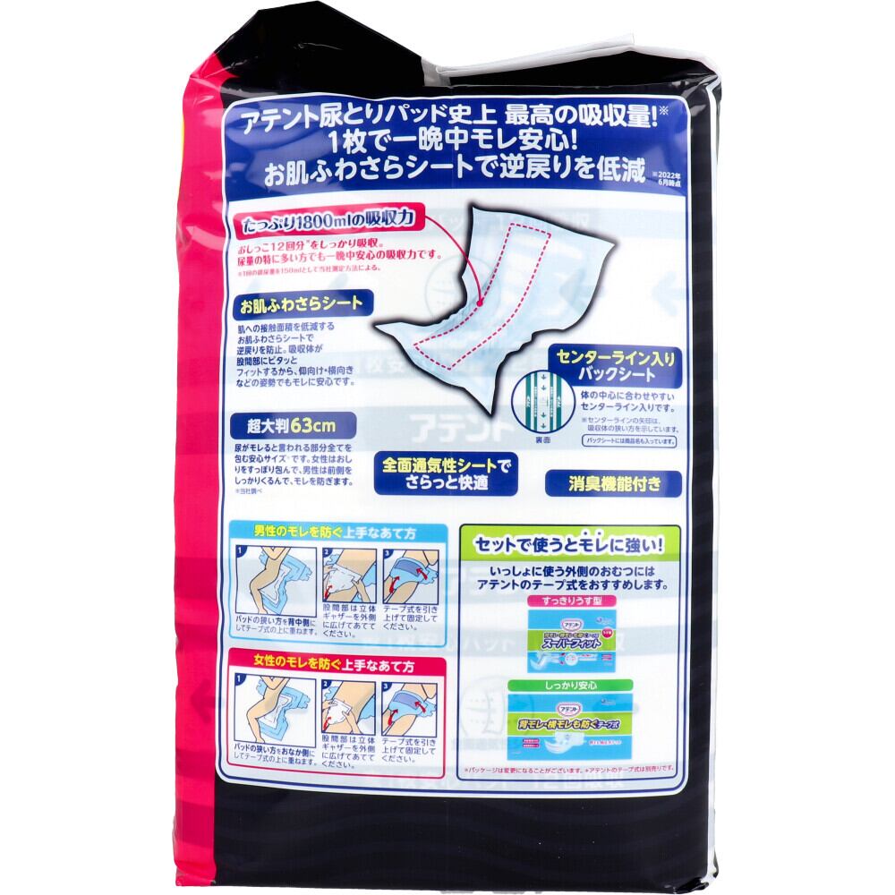 おしっこ12回分をしっかり吸収。尿量の特に多い方でも一晩中安心の吸収力です。