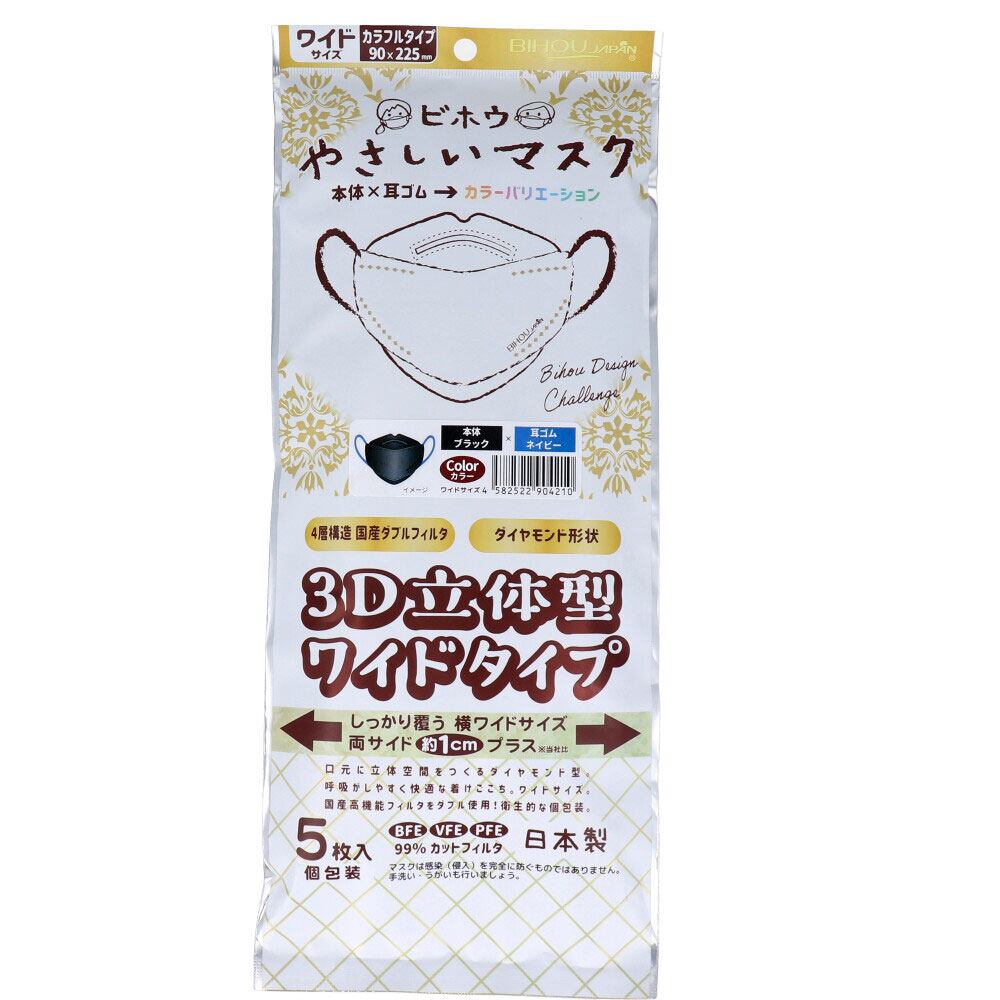 【2セット】 やさしいマスク 3D立体型 ワイドサイズ ブラック×ネイビー 個包装 5枚入 【pto】