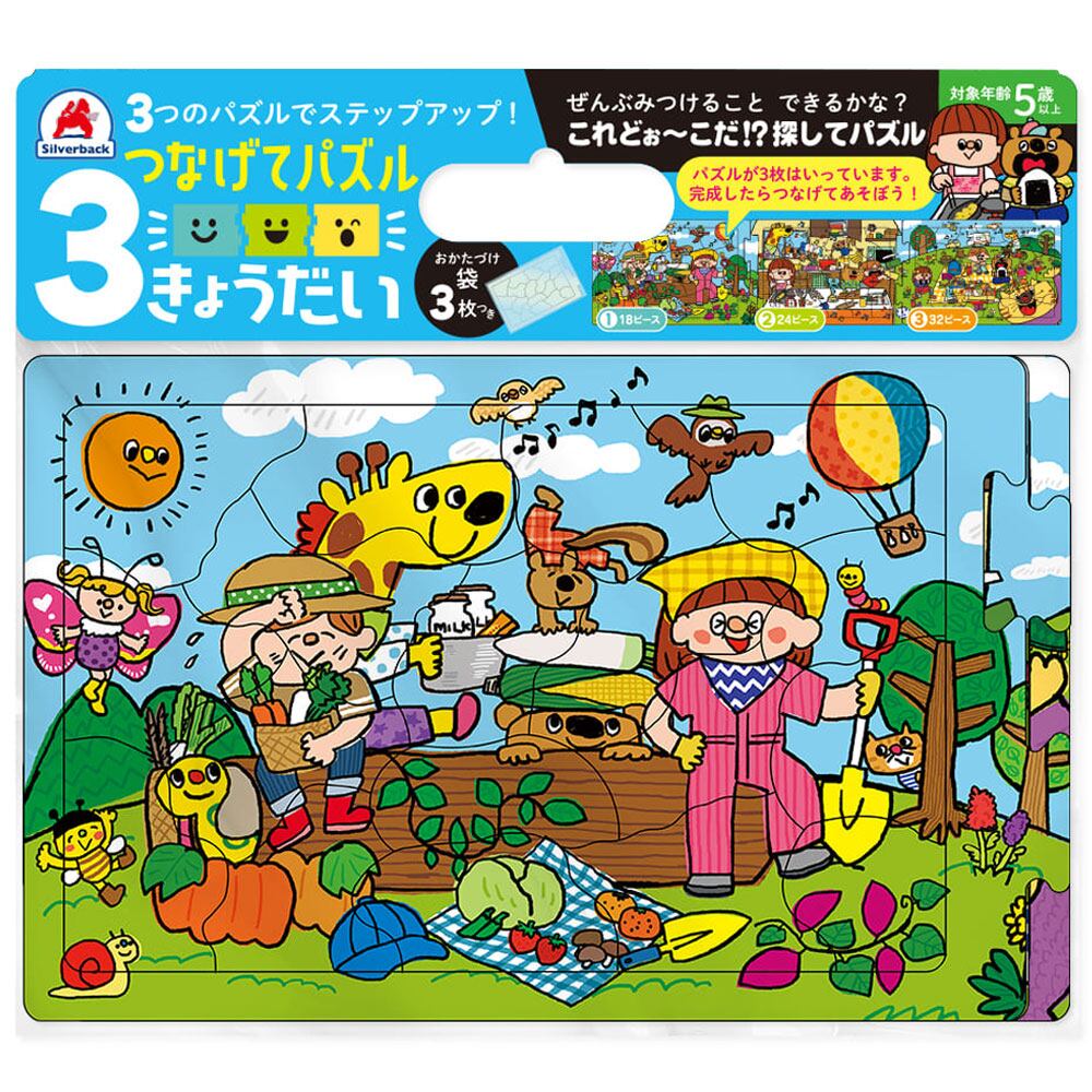 ・パズル:3枚(18ピース、24ピース、32ピース)・おかたづけ袋:3枚