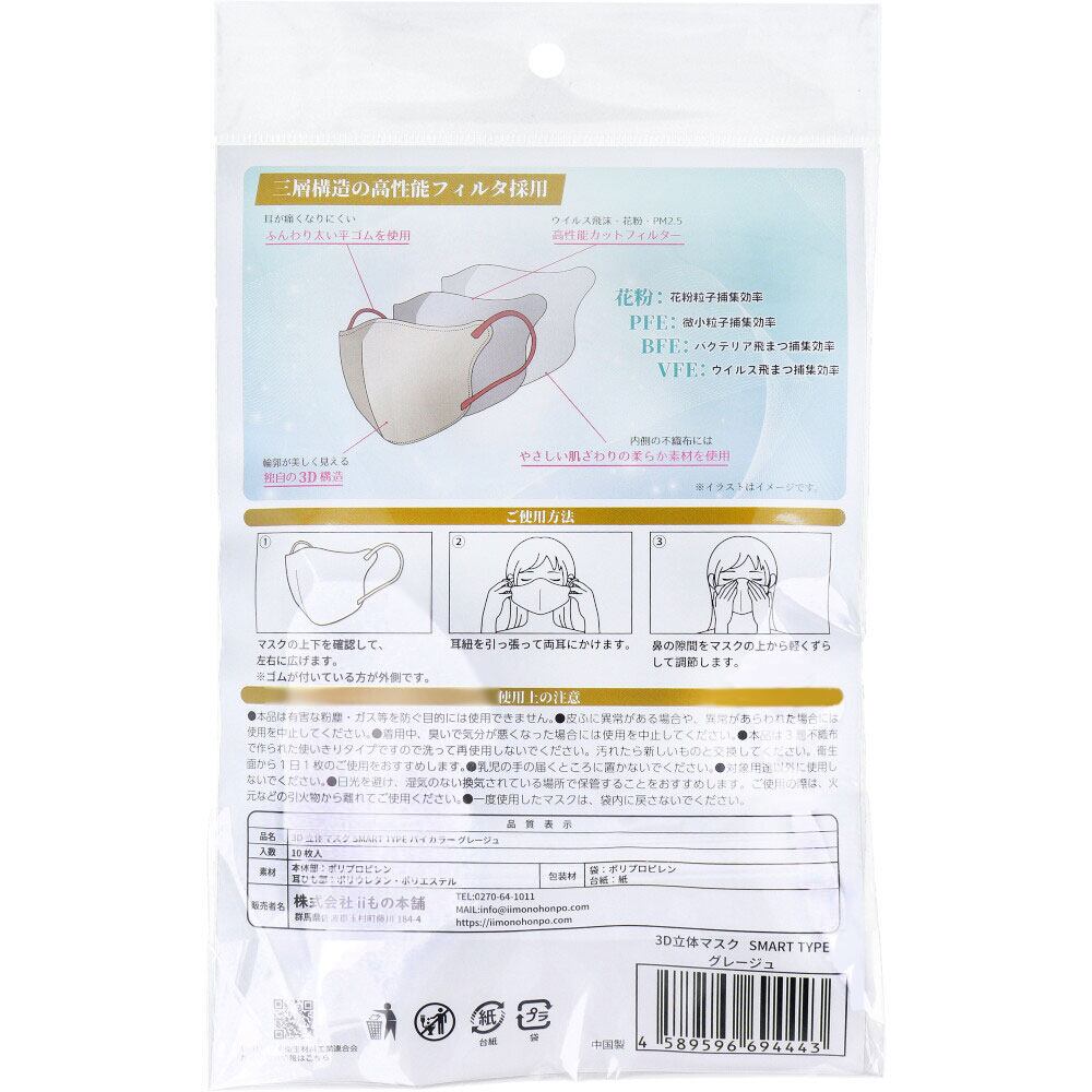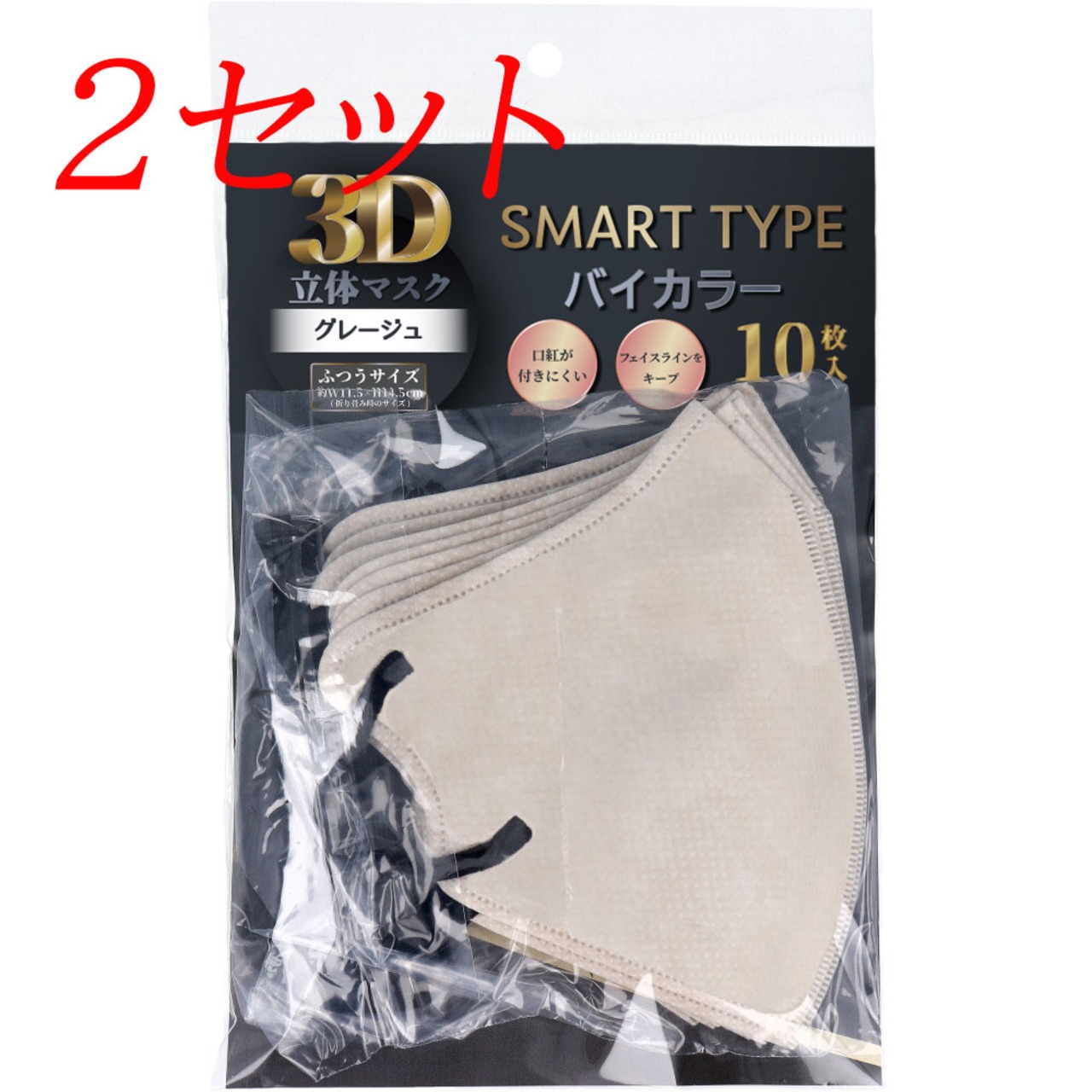 【2セット】 3D立体マスク スマートタイプ バイカラー グレージュ ふつうサイズ 10枚入 【pto】