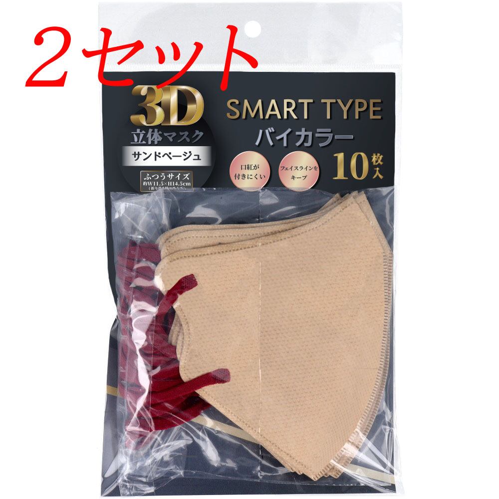 【2セット】 3D立体マスク スマートタイプ バイカラー サンドベージュ ふつうサイズ 10枚入 【pto】