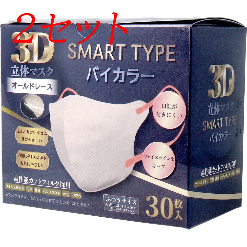 【2セット】 3D立体マスク スマートタイプ バイカラー オールドレース ふつうサイズ 30枚入 【pto】