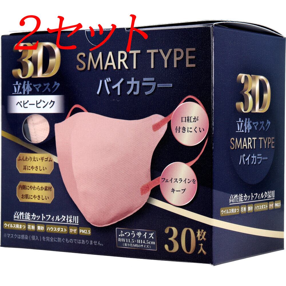 【2セット】 3D立体マスク スマートタイプ バイカラー ベビーピンク ふつうサイズ 30枚入 【pto】