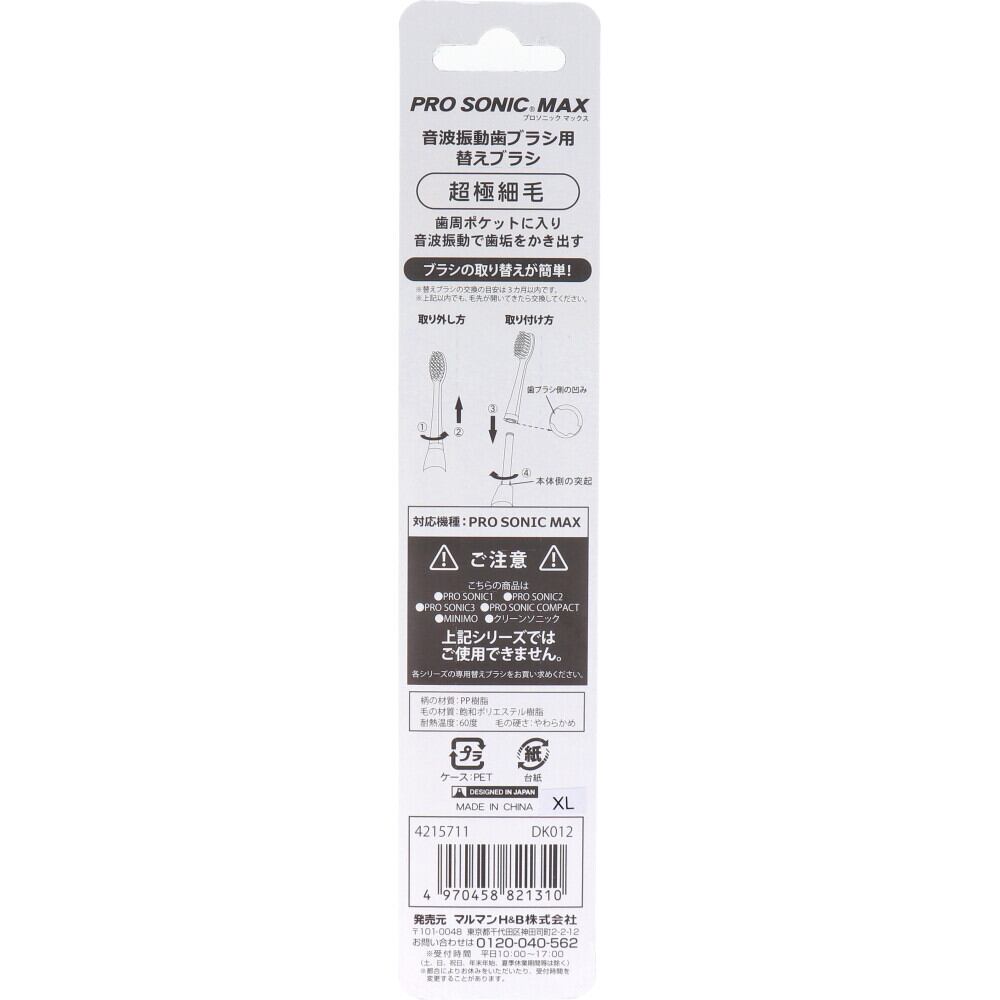 【2セット】 音波振動歯ブラシ プロソニックMAX やわらかめ 替えブラシ DK012 2本入 【pto】