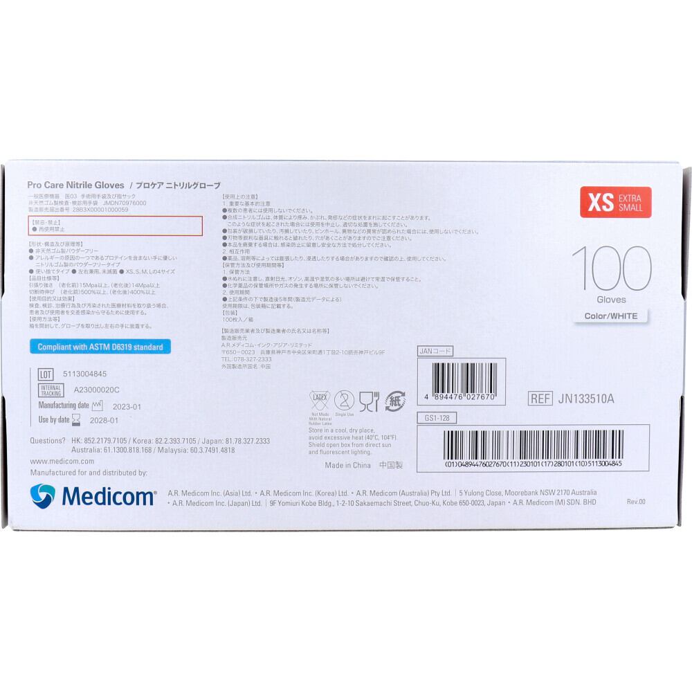 【2セット】 【業務用】プロケア ニトリルグローブ ホワイト XSサイズ 100枚入 【pto】