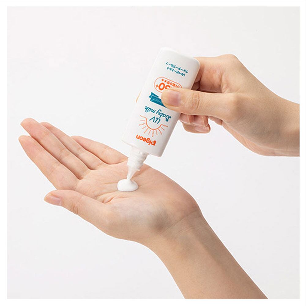 ★赤ちゃんのお肌に配慮してつくられたウォータープルーフタイプの日やけ止めです。敏感肌の方にもお使いいただけます。