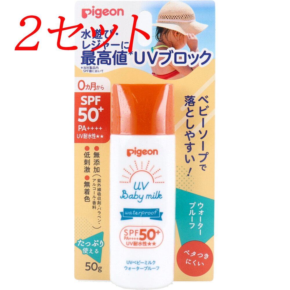 【2セット】 ピジョン UVベビーミルク ウォータープルーフ SPF50+ PA++++ 50g 【pto】