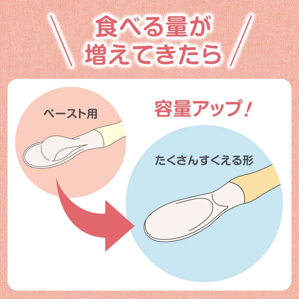 赤ちゃんのお口の発達研究から生まれたスプーンです。ムリに食べさせたり、飲ませたりするのではなく、赤ちゃん自身が適切量を食べたり飲んだりできるように促すことができます。