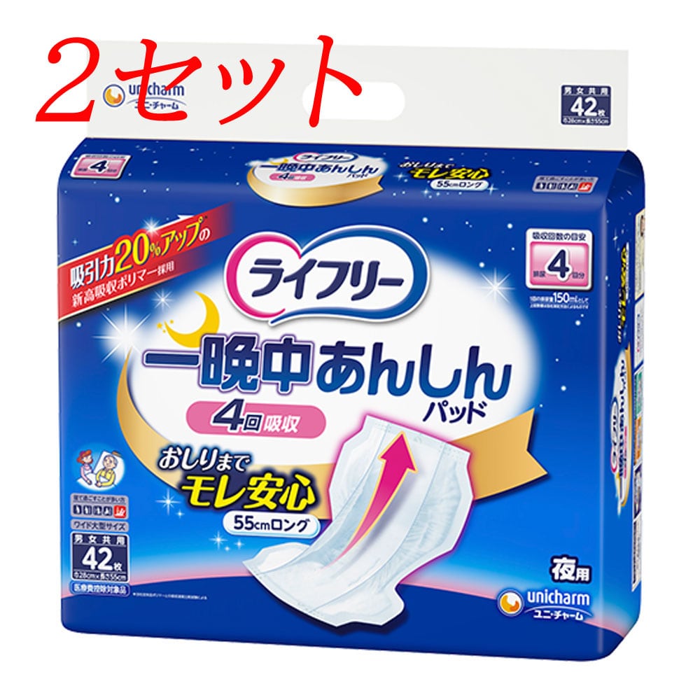 【2セット】 ライフリー 一晩中あんしん尿とりパッド 4回吸収 夜用42枚 【pto】