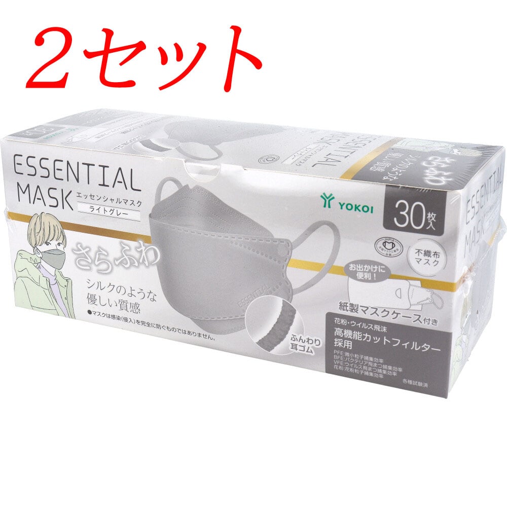 【2セット】 さらふわ ESSENTIAL MASK 不織布マスク ライトグレー FD30-GR 紙製マスクケース付き 30枚入 【pto】