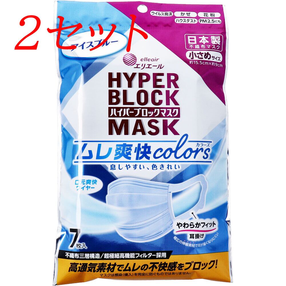 【2セット】 エリエール ハイパーブロックマスク ムレ爽快 colors アイスブルー小さめサイズ 7枚 【pto】