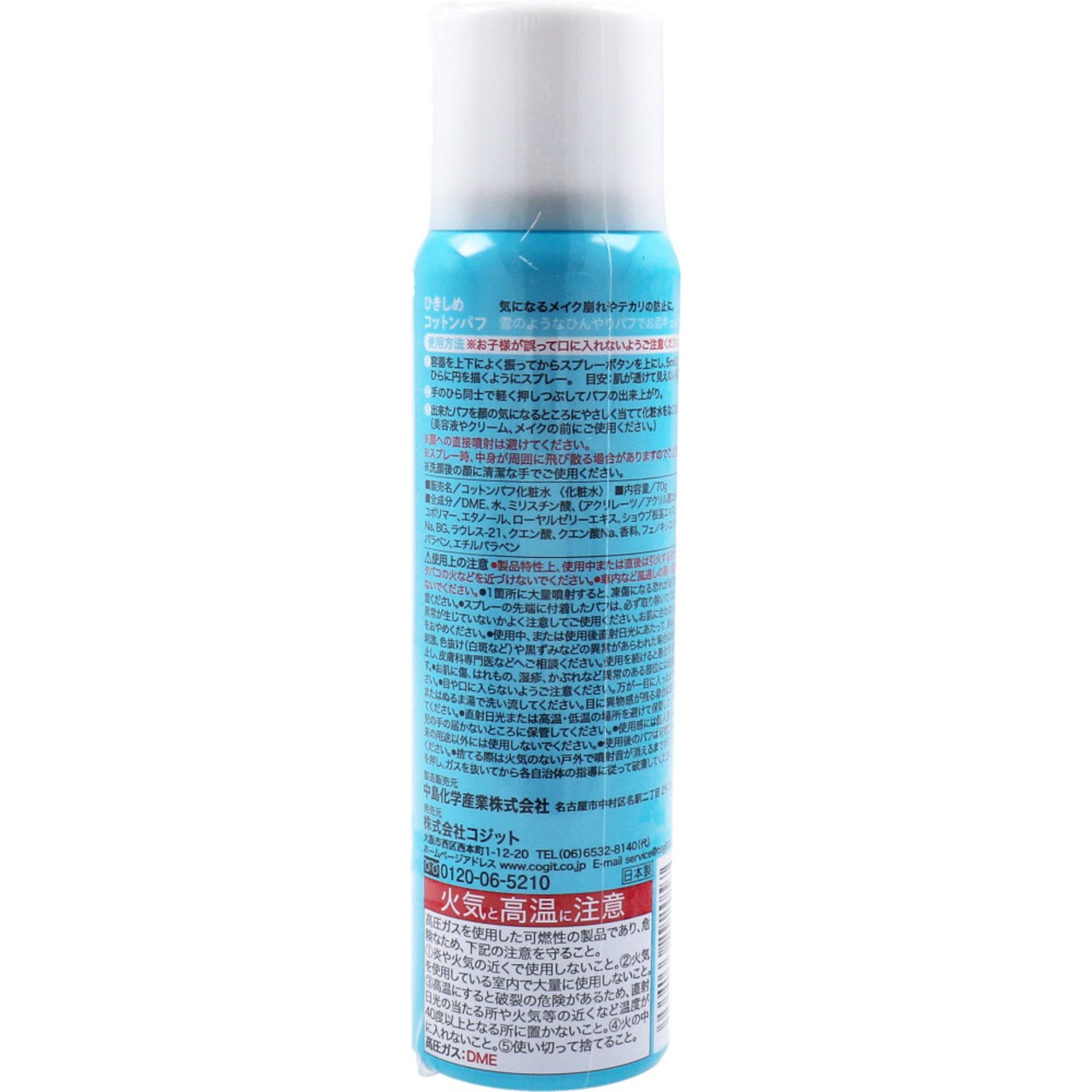 手のひらにシューッとすれば、冷たい雪のようなひんやりパフが出来上がり。肌をあっという間にキュッとひきしめます。
