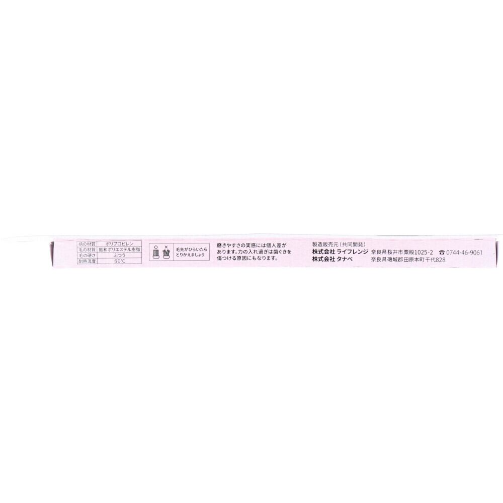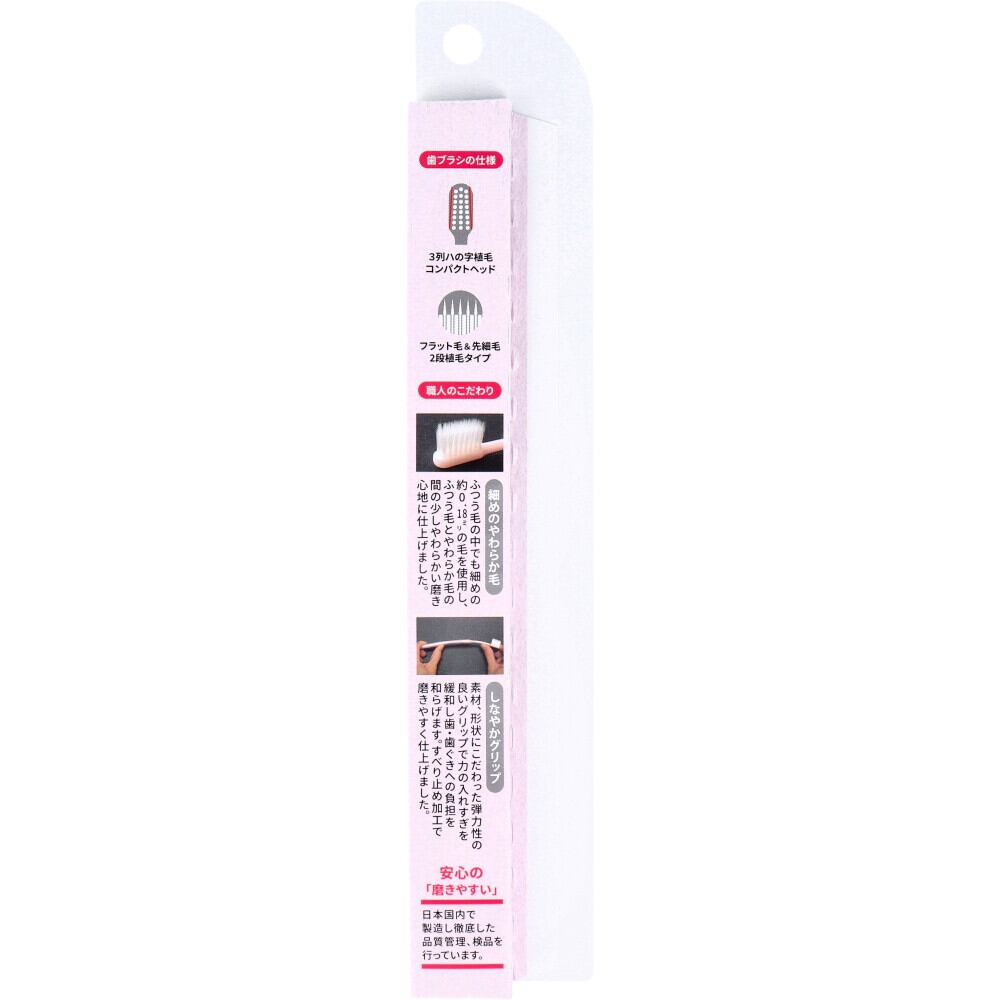●細めのやわらか毛。ふつう毛の中でも細めの約0.18ミリの毛を使用し、ふつう毛とやわらか毛の間の少しやわらかい磨き心地に仕上げました。