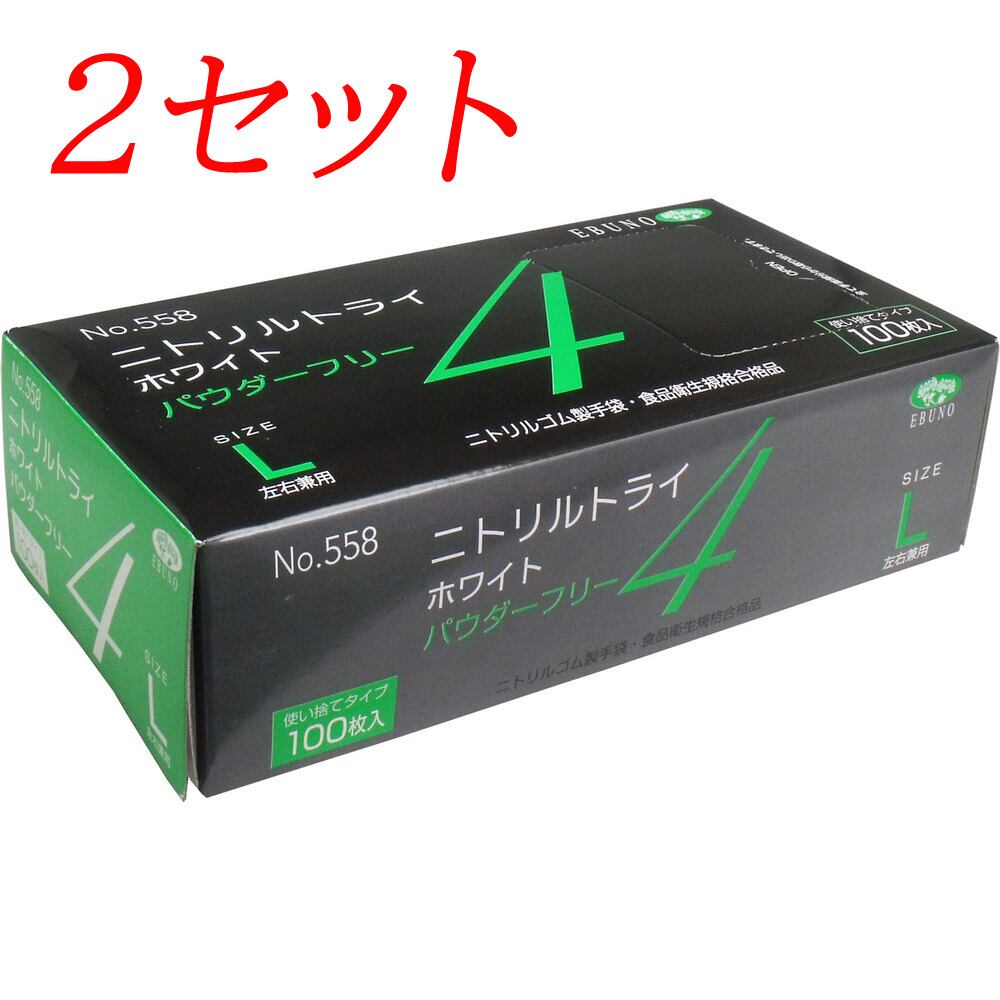 【2セット】 【業務用】No.558 ニトリルトライ4 ホワイト パウダーフリー ニトリルゴム製 使い捨て手袋 Lサイズ 100枚入 【pto】