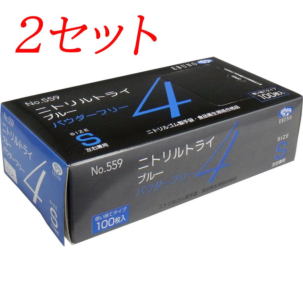 【2セット】 【業務用】No.559 ニトリルトライ4 ブルー パウダーフリー ニトリルゴム製 使い捨て手袋 Sサイズ 100枚入 【pto】