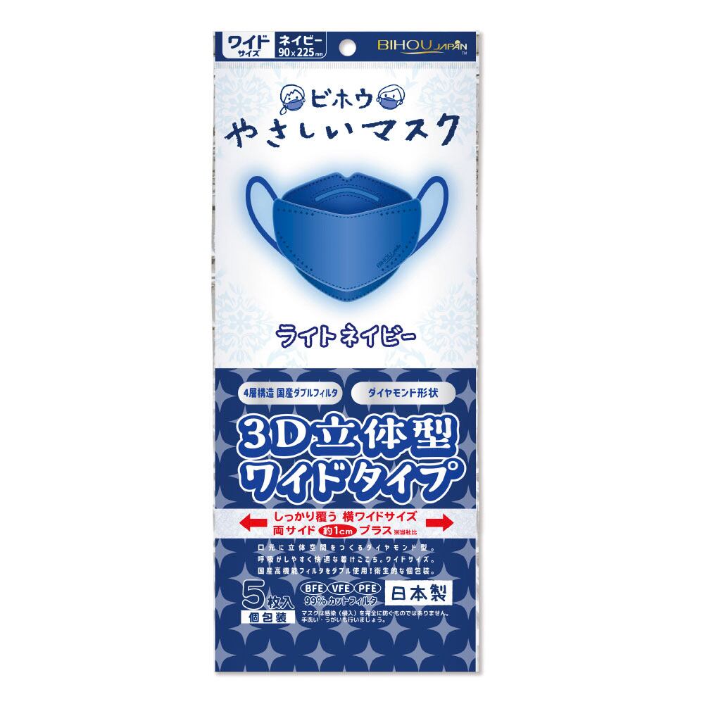 【2セット】 やさしいマスク3D立体型 ワイドタイプ ライトネイビー 個包装 5枚入 【pto】