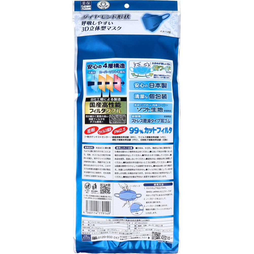 ダイヤモンド形状の呼吸しやすい3D立体型マスク。