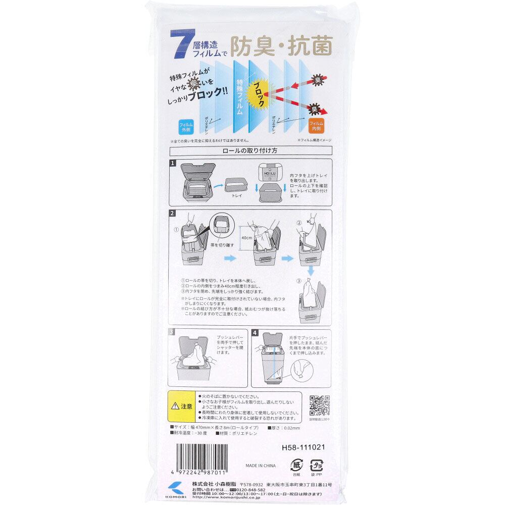 ●臭いをシャットアウトして、菌の増殖を抑える防臭・抗菌ロール。ロール取り替え時も臭いが漏れにくい。