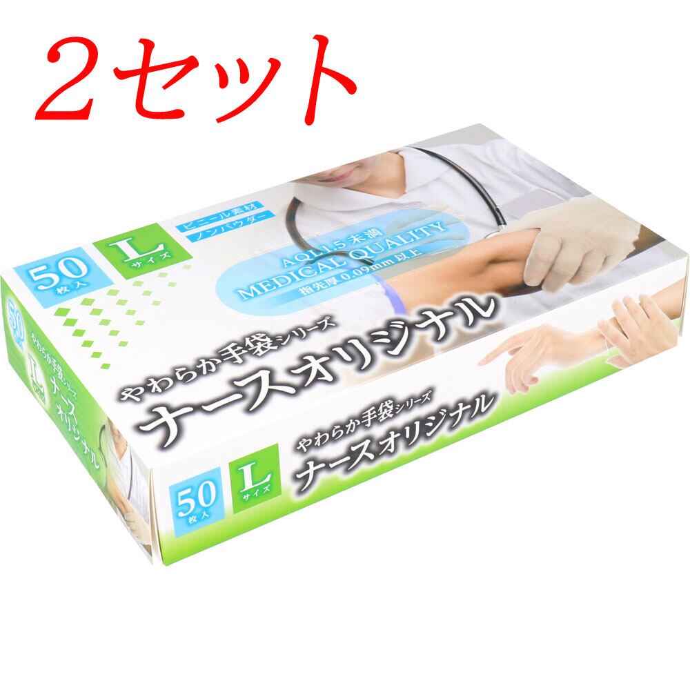 【2セット】 やわらか手袋 ナースオリジナル ビニール素材 Lサイズ 50枚入 【pto】
