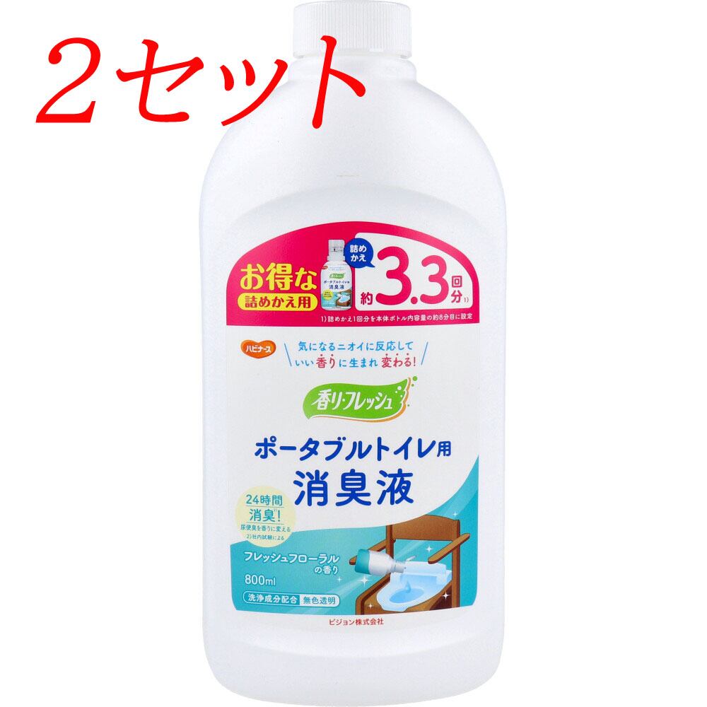 【2セット】 ハビナース 香リフレッシュポータブルトイレ用消臭液 詰替用 フレッシュフローラルの香り 約3.3回分 800mL 【pto】