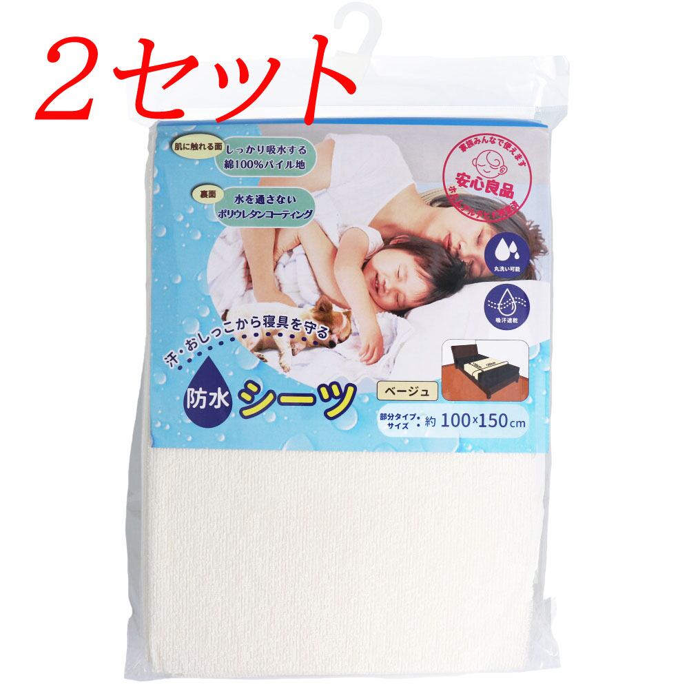【2セット】 防水シーツ 100×150cm ベージュ 【pto】