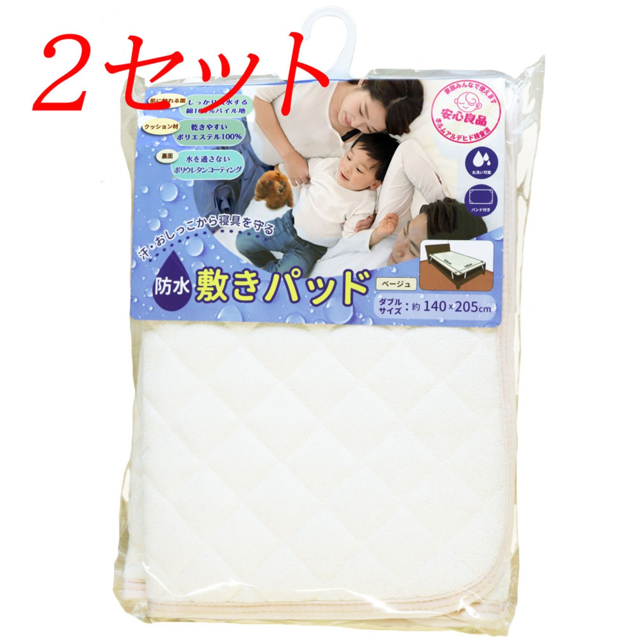 【2セット】 防水敷きパッド ダブル 140×205cm ベージュ 【pto】