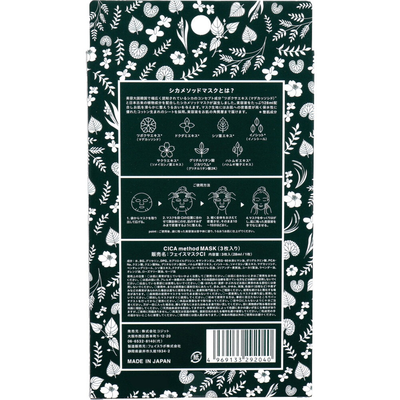 【2セット】 CICA method MASK シカ メソッド フェイスマスク 3枚入 【pto】