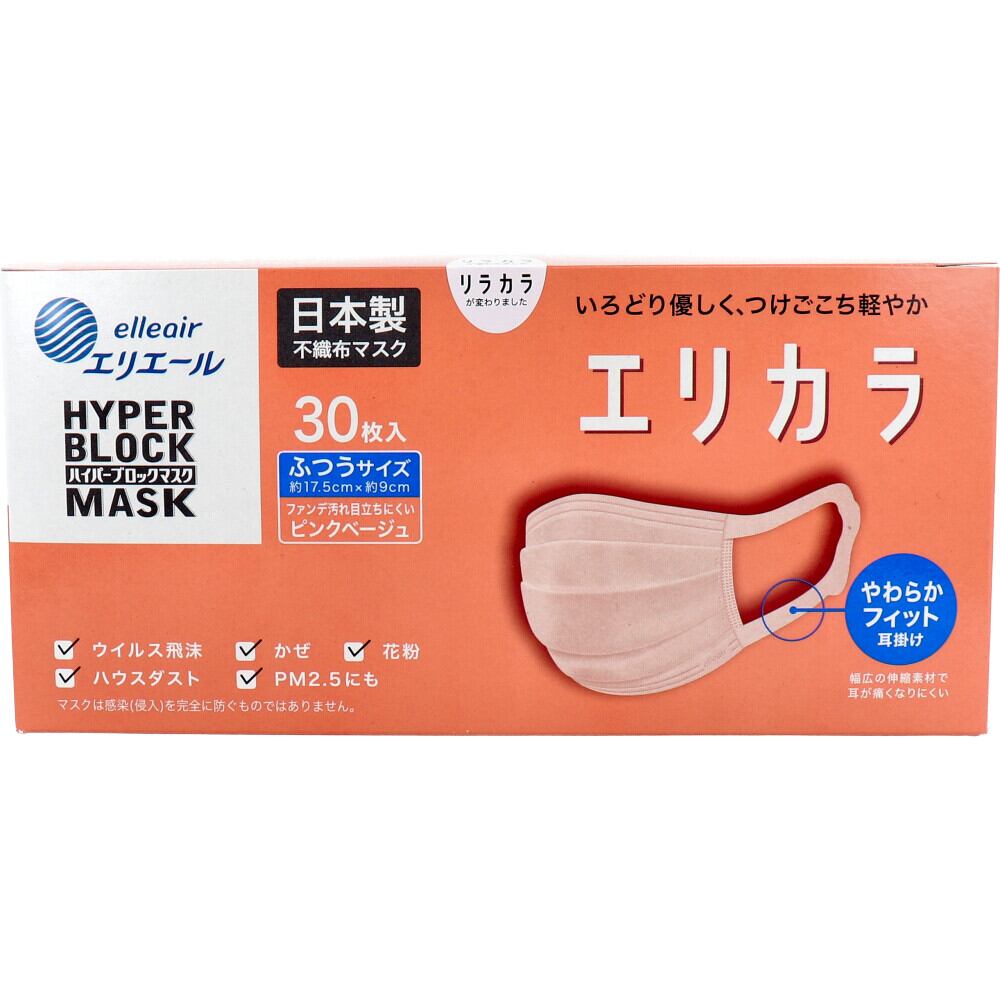 【2セット】 エリエール ハイパーブロックマスク エリカラ ピンクベージュ ふつうサイズ 30枚入 【pto】