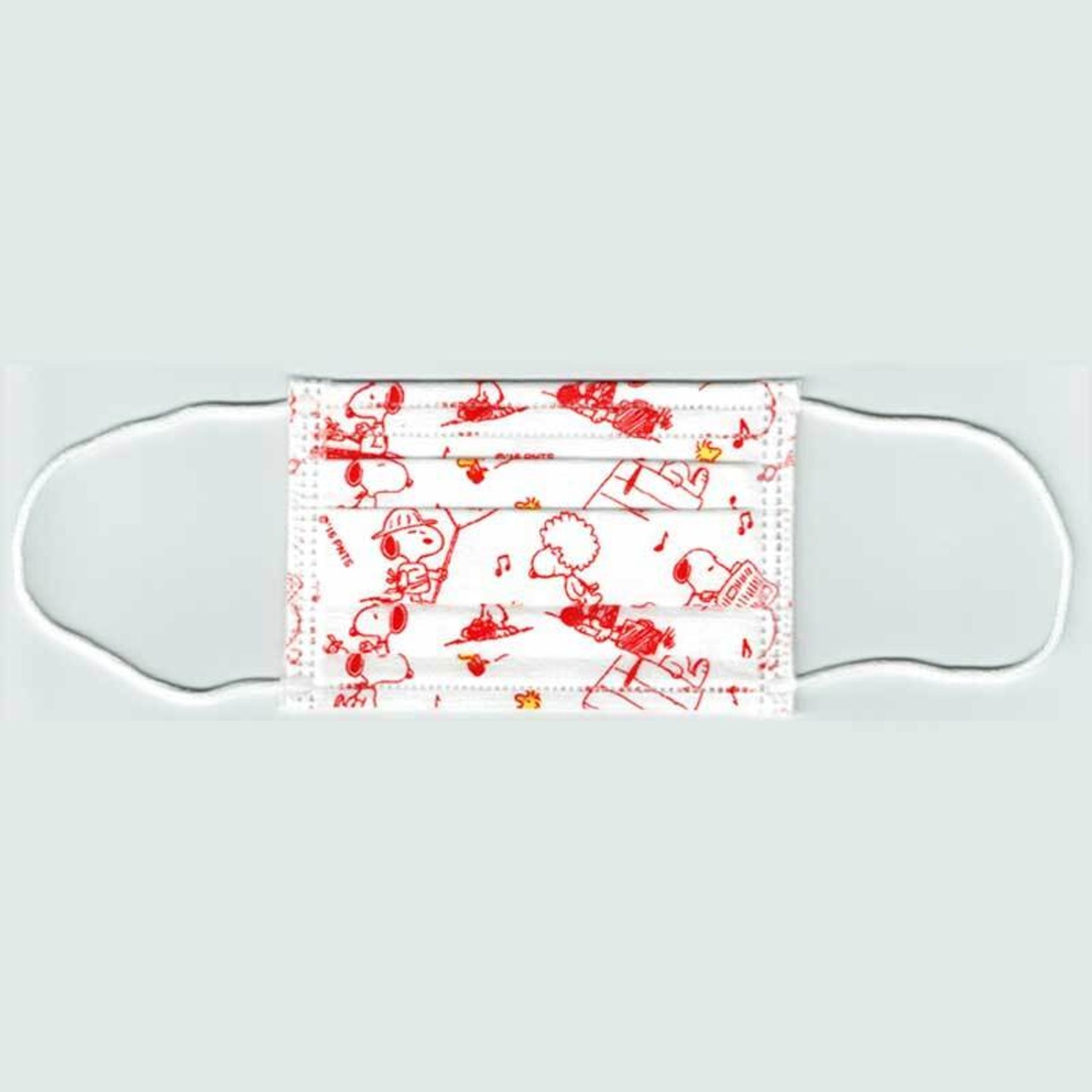 通気性の良い3層不織布マスク。かわいいスヌーピーがプリントされています。立体構造により口もとに空間ができるので、呼吸はラクラク、会話もスムーズにできます。