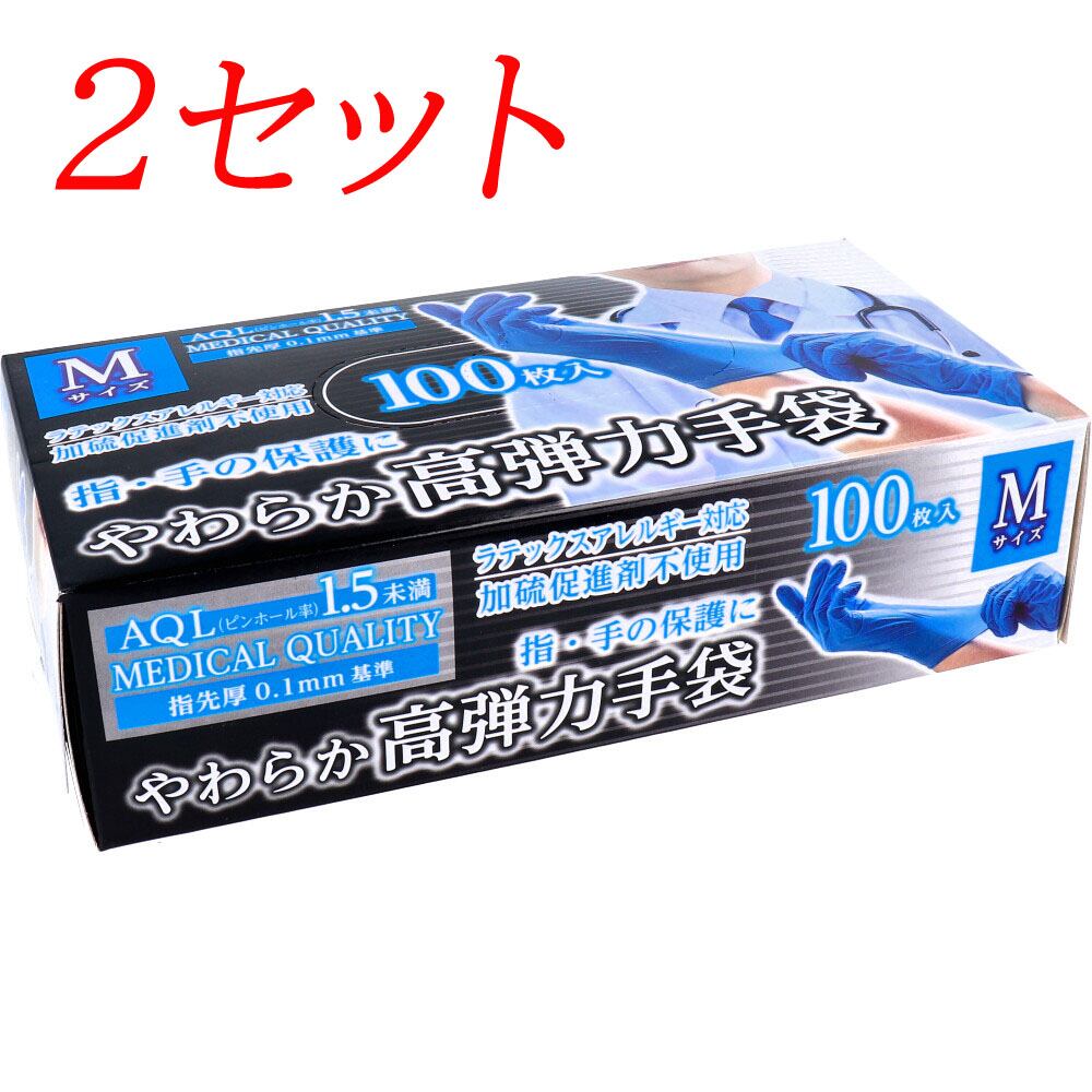 【2セット】 やわらか高弾力手袋 ビニール素材 ノンパウダー Mサイズ 100枚入 【pto】