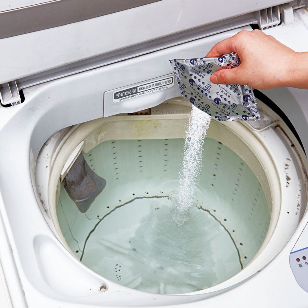 (2)本品1包を洗濯槽に入れ、15分程度洗濯機を運転して溶かします。