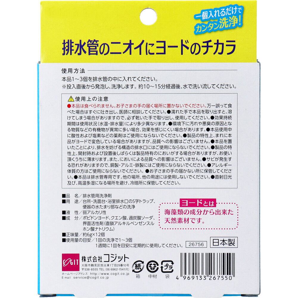【2セット】 コジット 排水管のニオイにヨードのチカラ 非塩素系錠剤 12個入 【pto】