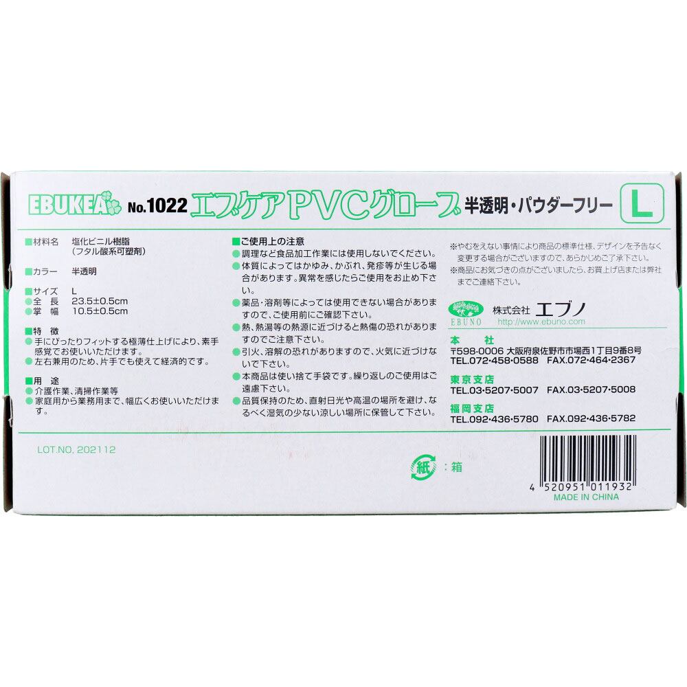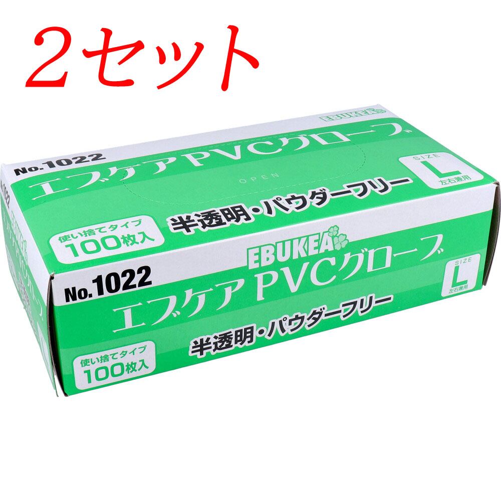 【2セット】 【業務用】No.1022 エブケアPVCグローブ 半透明 パウダーフリー 使い捨て手袋 Lサイズ 100枚入 【pto】