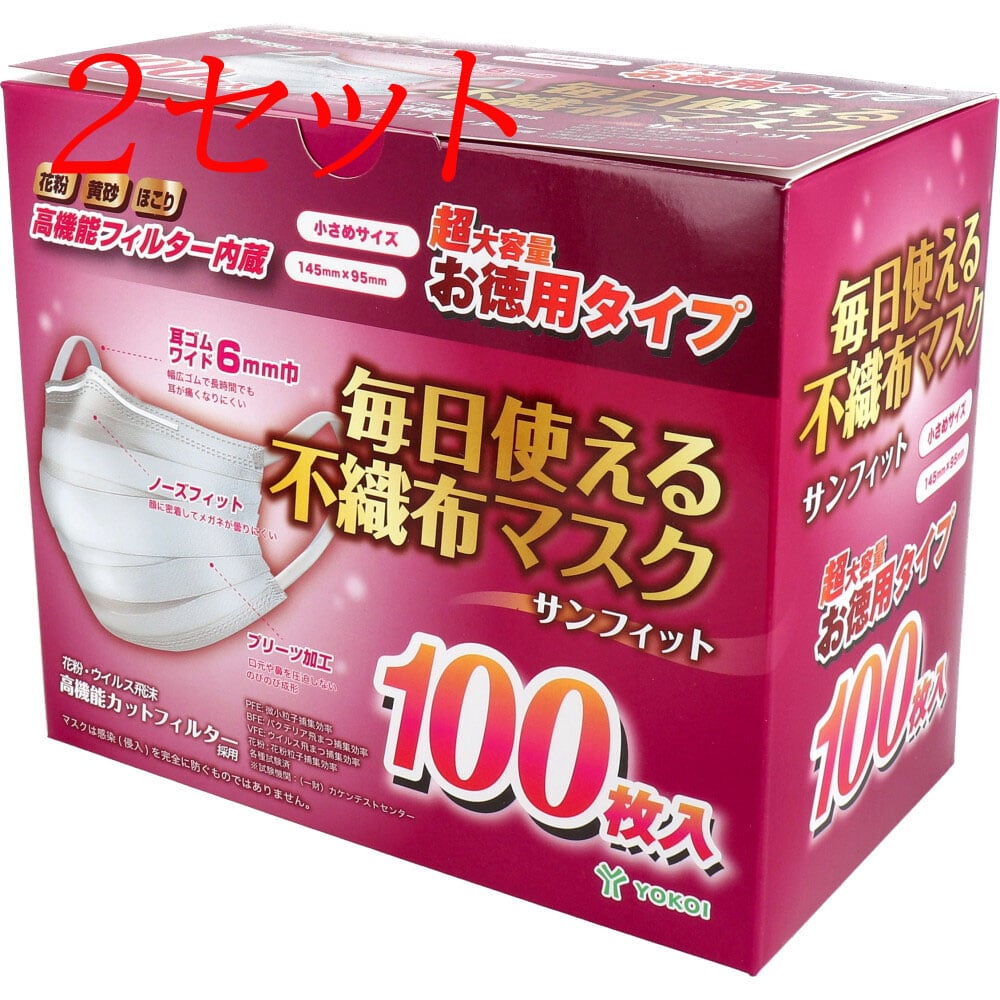 【2セット】 サンフィット 毎日使える不織布マスク 小さめサイズ 100枚入 【pto】