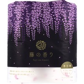 パルプ100%、2枚重ねだから肌ざわりもやさしくソフトタッチ。舞い散る藤の花を楽しめるようにデザインした紫のプリント柄と上品で落ち着いた深みのある香りのトイレットペーパーです。