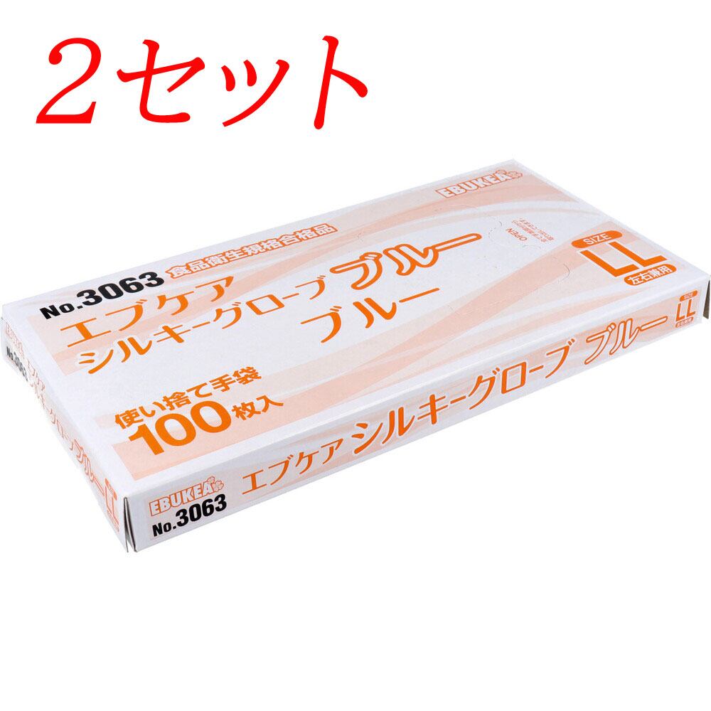 【2セット】 【業務用】No.3063 エブケアシルキーグローブ 使い捨て手袋 ブルー 箱入 LLサイズ 100枚入 【pto】