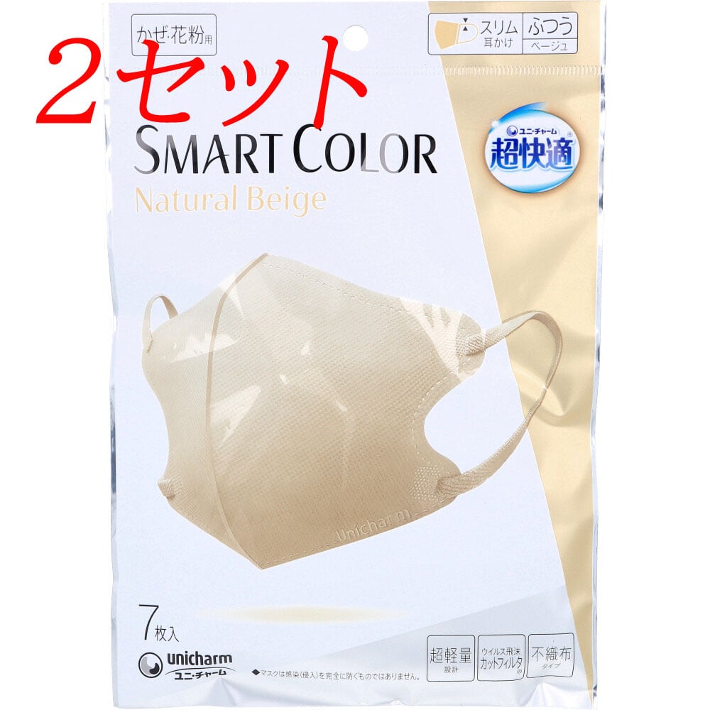 【2セット】 超快適マスク スマートカラー(SMART COLOR) ナチュラルベージュ ふつうサイズ 7枚入 【pto】