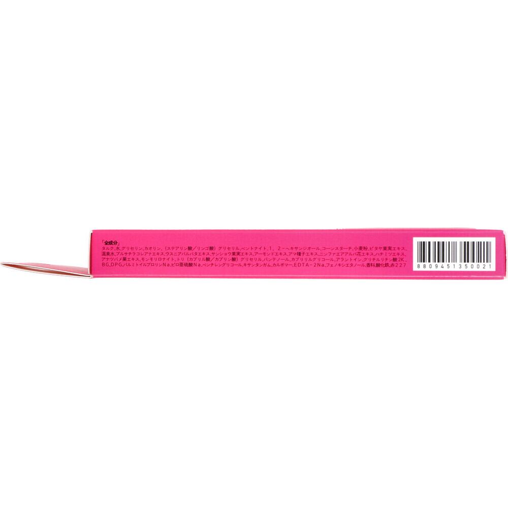 タルク、水、グリセリン、カオリン、(ステアリン酸/リンゴ酸)グリセリル、ベントナイト、1、2?ヘキサンジオール、コーンスターチ、小麦粉、ピタヤ果実エキス、温泉水、プルサチラコレアナエキス、ウスニアバルバタエキス、サンショウ果実エキス、アーモンドエキス、アマ種子エキス、ニンファエアアルバ花エキス、ハチミツエキス、アナツバメ巣エキス、モンモリロナイト、トリ(カプリル酸/カプリン酸)グリセリル、パンテノール、カプリリルグリコール、アラントイン、グリチルリチン酸2K、BG、DPG、パルミトイルプロリンNa、ピロ亜硫酸Na、ペンチレングリコール、キサンタンガム、カルボマー、EDTA?2Na、フェノキシエタノール、香料、酸化鉄、赤227