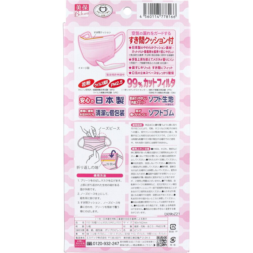 【2セット】 すき間クッション付 ぴんくのやさしいマスク M小さめ ぴんく 個包装 5枚入 【pto】