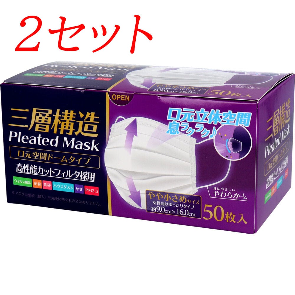 【2セット】 三層構造 口元空間ドーム型マスク 女性向けゆったりタイプ 50枚入 【pto】