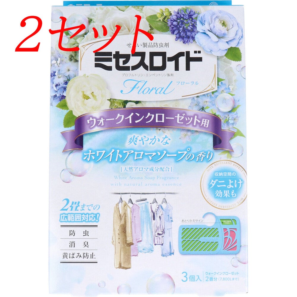 【2セット】 ミセスロイドフローラル 防虫剤 ウォークインクローゼット用 1年 ホワイトアロマソープの香り 3個入 【pto】