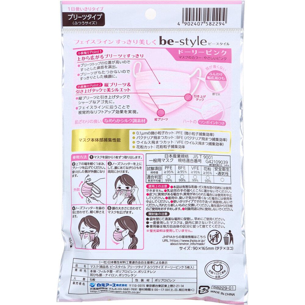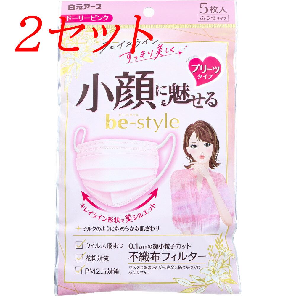 【2セット】 ビースタイル 小顔に魅せる プリーツタイプ ドーリーピンクふつうサイズ 5枚入 【pto】