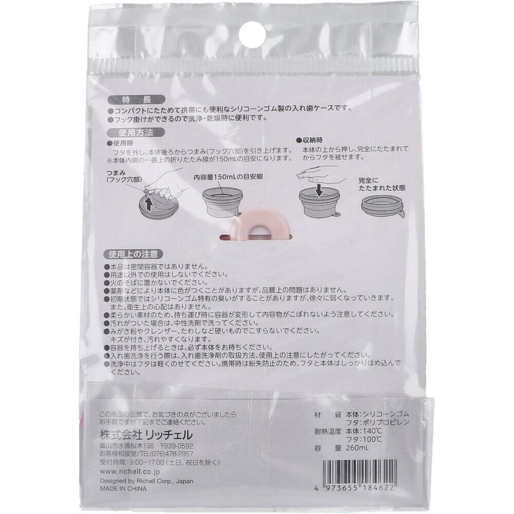 ●コンパクトにたためて携帯にも便利なシリコーンゴム製の入れ歯ケースです。