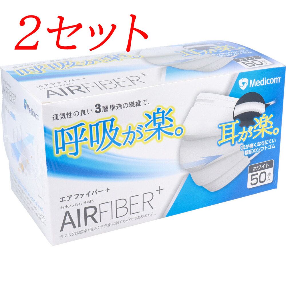 【2セット】 エアーファイバープラス マスク ホワイト 50枚入 【pto】
