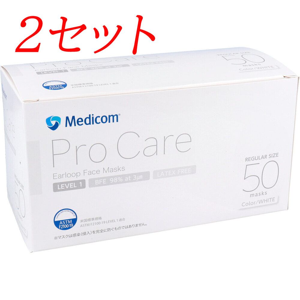 【2セット】 プロケア イヤーループマスク レギュラーサイズ ホワイト 50枚入 【pto】