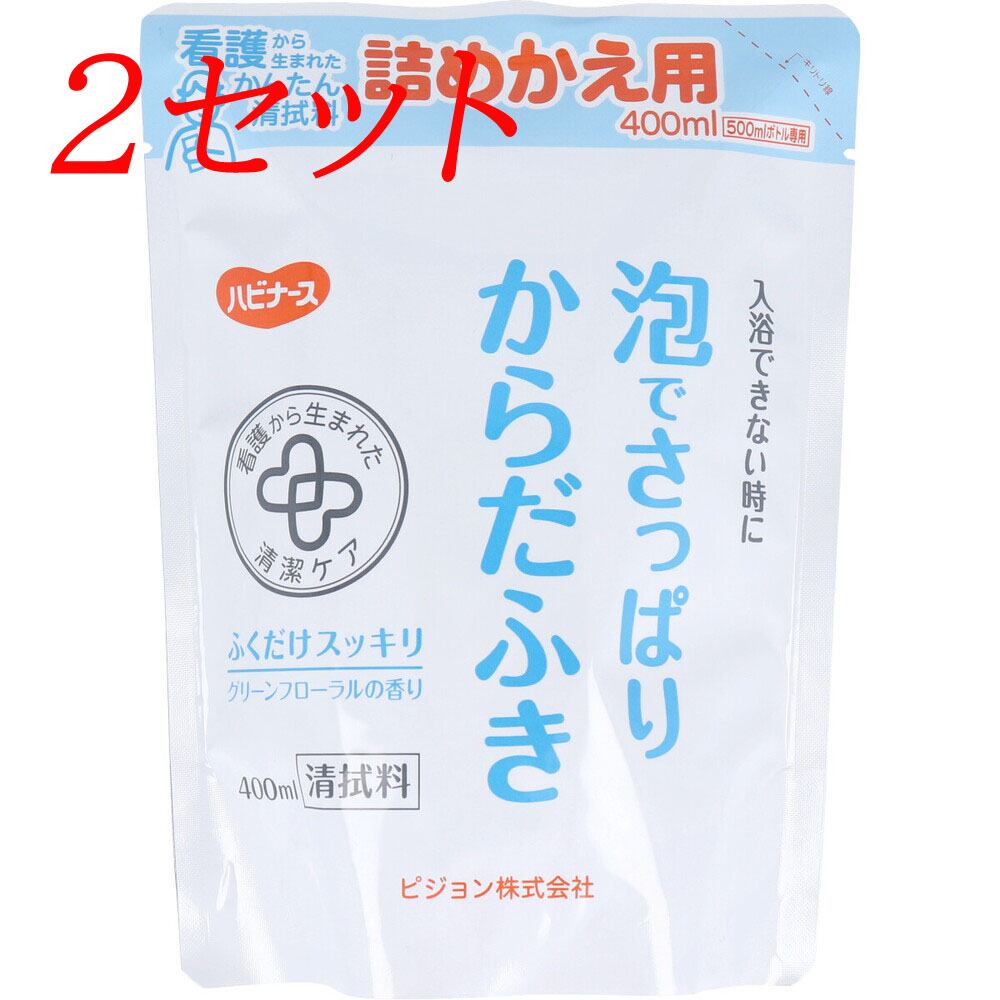 【2セット】 ハビナース 泡でさっぱりからだふき 詰替用 グリーンフローラルの香り 400mL 【pto】