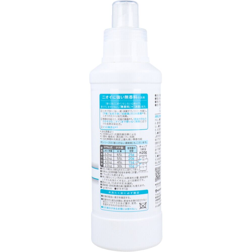 無香料、だけじゃない。ニオイの少ない原料を厳選した香りのない洗剤、濃縮タイプです。