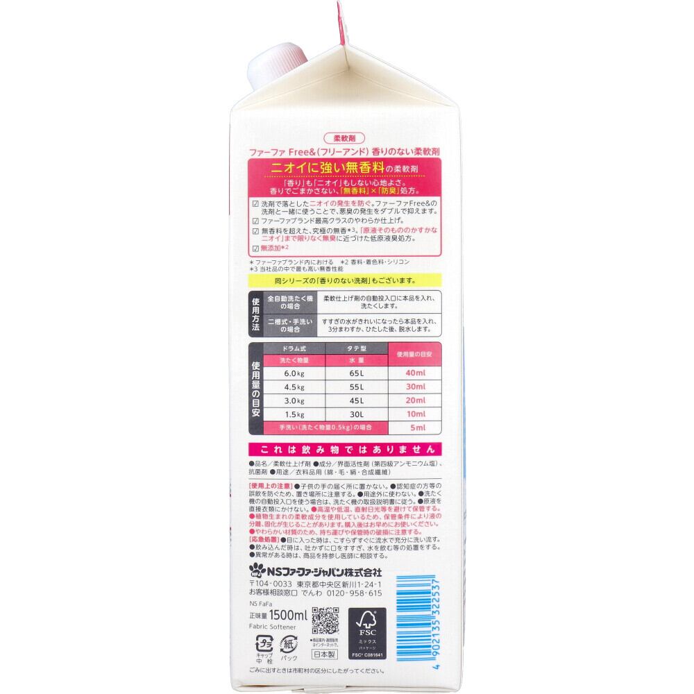 【2セット】 ファーファ フリー&(フリーアンド) 香りのない柔軟剤 無香料 詰替用 1500mL 【pto】