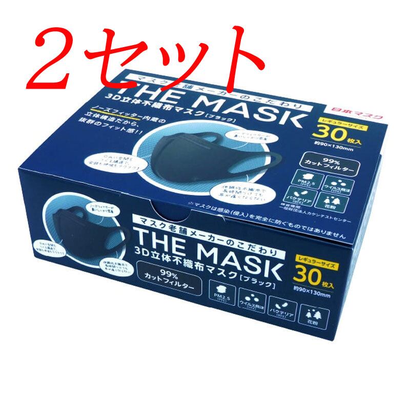 【2セット】 THE MASK 3D立体不織布マスク ブラック レギュラーサイズ 30枚入 【pto】